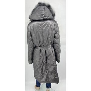 Adrienne Landau Large Anorak Coat Gray Fox Fur Trim Hooded Belted Puffer Jacket