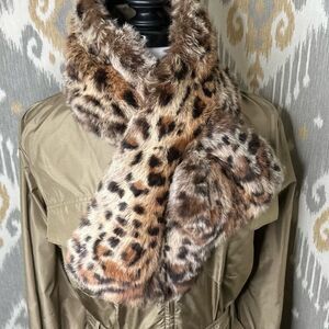 Adrienne Landau Leopard Print Rabbit Fur Pull Thru Scarf.