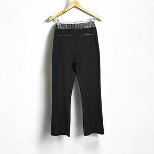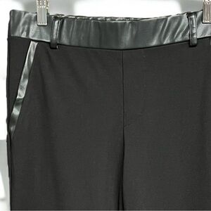 🌻Adrienne Landau Onyx Black Vegan Leather Trim Trouser Pants Rhinestone Size M