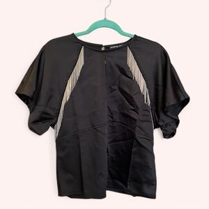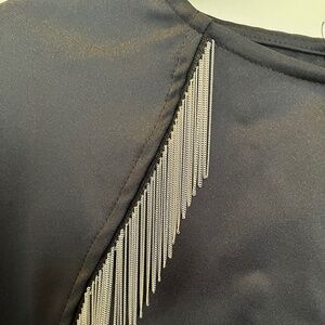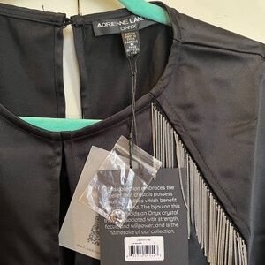 Adrienne Landau Onyx Black Metal Fringe Blouse NWT Size S