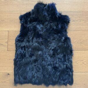 Adrienne Landau Rabbit & Fox Fur Dyed Vest - Midnight Blue - Size S - Like New