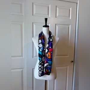 100% silk scarf by Adrienne Landau. Vibrant floral design, perfect complement to any outfit.