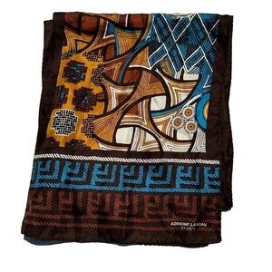 Adrienne Landau Studio Brown Blue Gold Silk Scarf