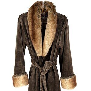 Adrienne Landau Womens L Faux Fox Fur Trim Robe Belted Cozy Plush Quiet Luxury