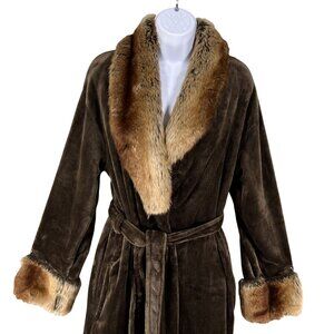Adrienne Landau Womens Size M/L Faux Fox Fur Trim Robe Belted Cozy Plush Quiet Luxury Loungewear