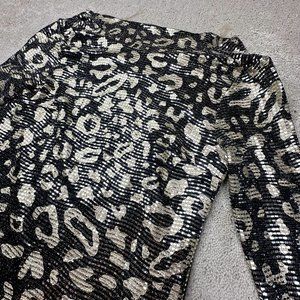 • Adrienne Sequin Dress Size Small Black And Gold with silver sequins Long sleeve