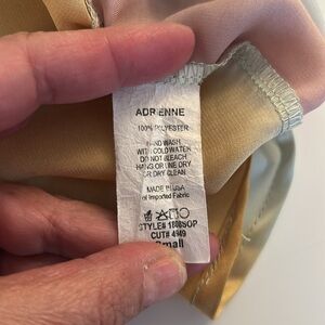 Adrienne Pastel Striped Casual High Low Short Sleeve Satin V-Neck Top Size Small