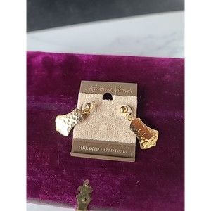 Adrienne Picard Pierced Hammered Dangling Earrings NOS 14KT GF POSTS