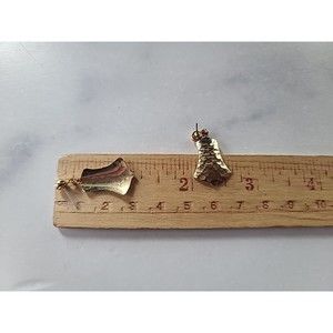 These are a vintage pair of Adrienne Picard hammered dangling pierced earrings with 14KT gold filled posts on their orginal stock card.