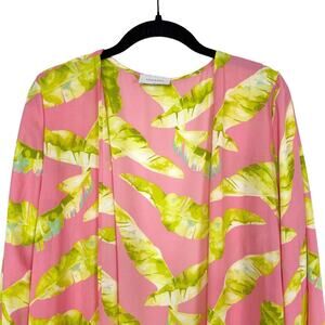 Adrienne Pink Yellow Floral Long Beach Cover-Up Duster Women’s Size Large