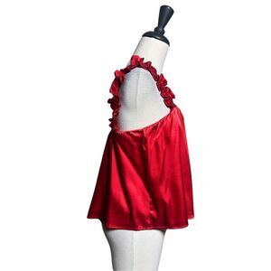 Adrienne Ruffled Red Silky Summer Blouse Size Small