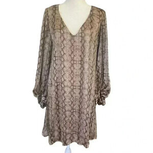 Adrienne Shift Dress Snakeskin Print Size L. Taupe. Wedding guest Graduation