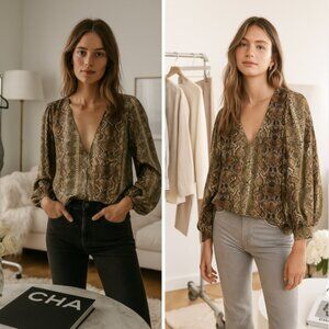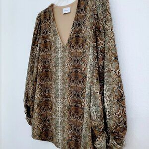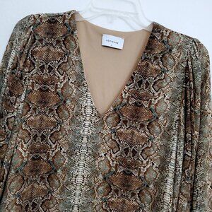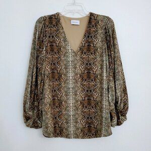 Adrienne Snake Print Peasant Balloon Sleeve V-Neck Women's Boho Blouse Medium