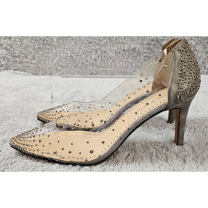 Adrienne Vitadini Clear Vinyl Rhinestone Heels Wedding Cocktail Party Sz 11 M