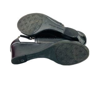 Adrienne Vittadin Black Leather Wedge Heel Open Toe Bootie Sandal Shoes US 9.5M