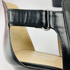Elevate your shoe game with these stylish black leather wedge heel open toe bootie sandals from Adrienne Vittadin. Perfect for travel, casual wear, workwear, and business events, these platforms and wedges feature a hook and loop closure, elastic accents on the strap, and a high heel height of 3-3.9 inches. The soft fine Nappa leather, cushioned insole, and comfortable design make these shoes a must-have for any season winter, summer, fall, or spring.