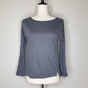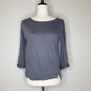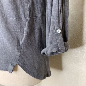 Adrienne Vittadini 100% Linen Scoop Neck Gray Top, Sz Small