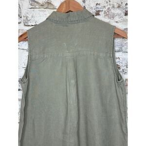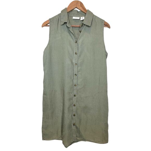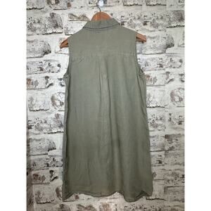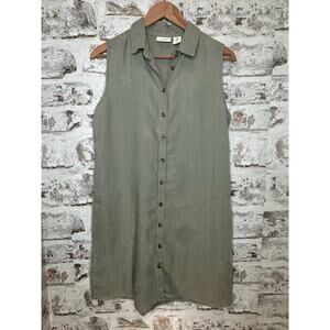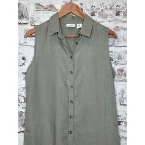 Adrienne Vittadini 100% linen button down sleeveless dress olive green size M