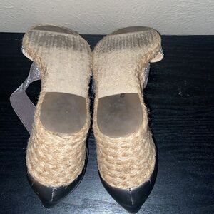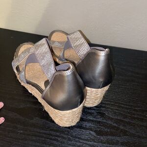 Adrienne Vittadini Barri Espadrille Wedge Sandal Shimmer all summer long with the Barri wedge sandal from Adrienne Vittadini. This pair features an espadrille wedge with rhinestone-covered straps for versatile appeal. First pic stock the rest actual item.