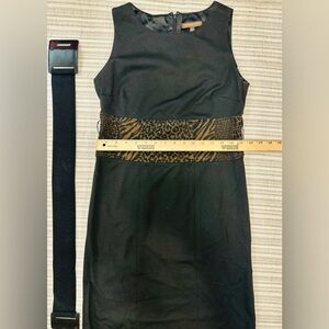 Adrienne Vittadini Black And Leopard Belted Dress, Size 4