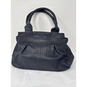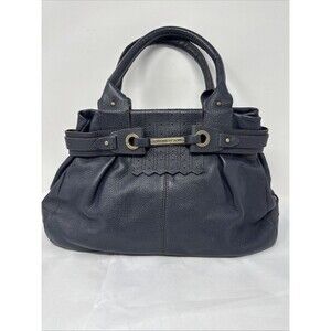 Adrienne Vittadini Black Leather Double Handle Shoulder Handbag Purse Hobo