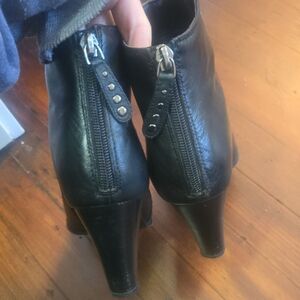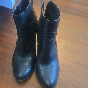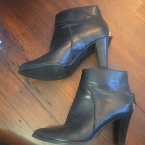 Chic black leather boots with a sleek heel. Ideal for stylish outings.