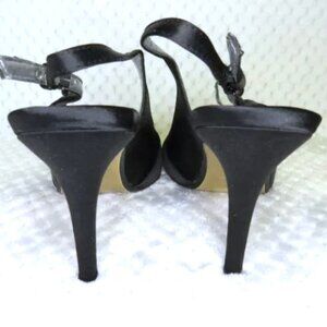 Adrienne Vittadini Black Satin Rhinestone Brooch Slingback Heels Size 7M
