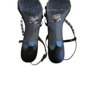 Adrienne Vittadini Black Strappy Crystal Stone Evening High Heels