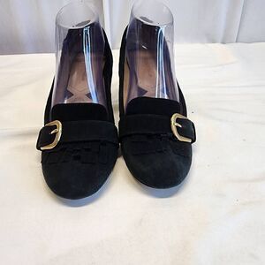 Adrienne Vittadini Black Suede Ginty Pumps Size 7.5 Block Heel Loafer Buckle