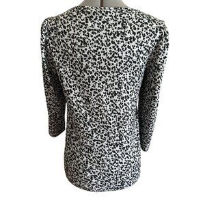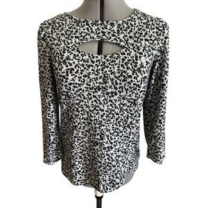 Adrienne Vittadini Black & White Animal Print Top 3/4 Sleeves Chest Cutout