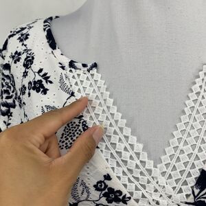 Adrienne Vittadini Blouse Women M Medium Floral Crochet V Neck Eyelet Flutter