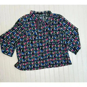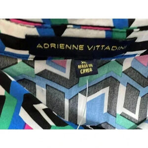 Adrienne Vittadini Blouse XL Long Sleeve Top Geometric Button Front NEW. 1100