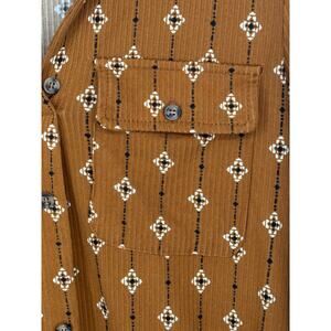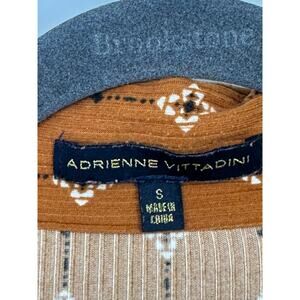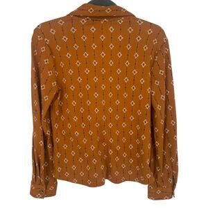 Adrienne Vittadini Brown Geometric Print Button-Up Top Workwear Office Stretch S