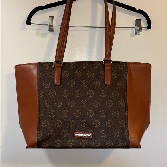 Adrienne Vittadini Brown Tote Bag with Monogram Design