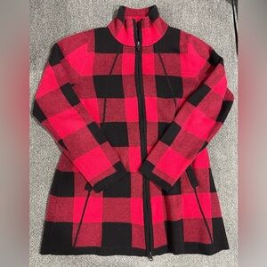 Adrienne Vittadini Buffalo Plaid Zip Up Sweater Size M