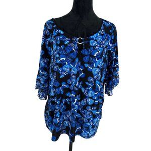 Adrienne Vittadini Butterfly Tunic Top Womens Size 2x Stretch Bell Sleeve Fairy