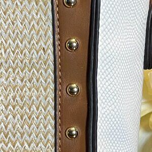 This GORGEOUS Adrienne Vittadini Capri Collection Tri-Tone Satchel is a stylish and versatile handbag designed for women. Made from leather with a multicolor exterior of bone/white/brown and brown leather handle/strap, this satchel handles/shoulder strap bag features an adjustable shoulder strap for added convenience. The Adrienne Capri model is part of the Capri Collection line, showcasing a chic and fashionable design perfect for any outfit or occasion. Very clean, Excellent Condition, Beautiful Leather Bag!