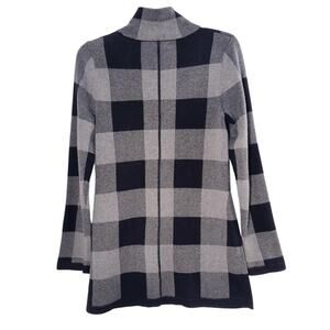 Adrienne Vittadini Cardigan Women's Size S Black Gray Check Full Zip Pockets