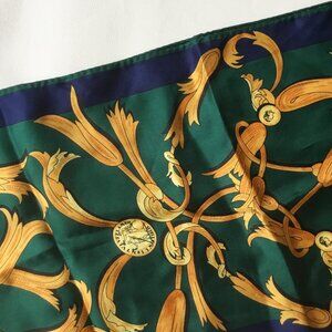 Adrienne Vittadini Coin & Tassel Blue Green Yellow Rectangular Scarf Fringe