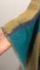 Stylish poncho featuring a geometric design in teal, navy, and tan. Accented with fringe for a boho look.