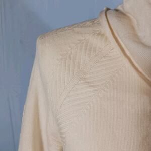 Adrienne Vittadini Cowl Neck Women's Small Ivory Long Sleeve Contrast Trim Wool