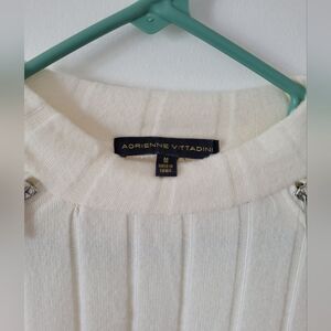 Lightweight sweater top in a cream Ivory color. Large ribbed material with zippers at the shoulders. Full length sleeves and crew neckline. Good condition, there is some pilling in some areas. Size medium measures approximately 26 inches long 19 inches underarm to underarm laid flat.