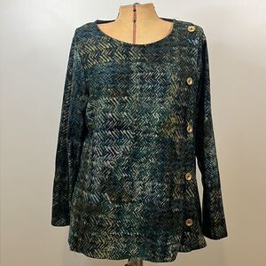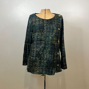 Adrienne Vittadini Forrest Green Knit Top with Button Detailing - Size XL