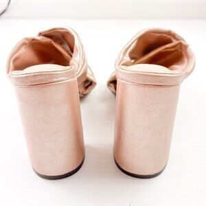 Adrienne Vittadini Genie Rose Gold Crossover Block Heel Slide Sandals Size 6