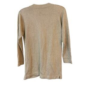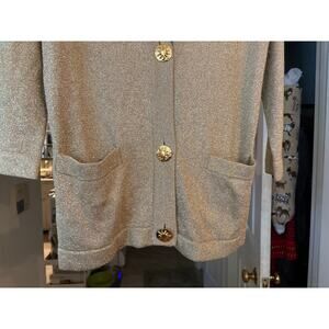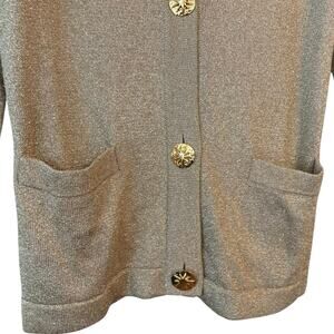 Adrienne Vittadini Gold Thread Cardigan Sweater 3 Button Front Long Line