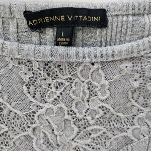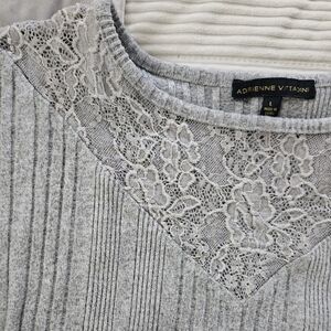 Adrienne Vittadini Gray Lace Detail Sweater Shirt Size L