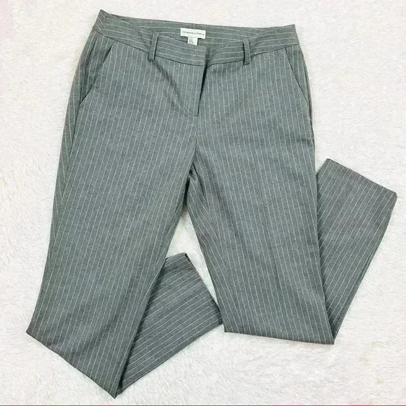 Adrienne Vittadini Gray Rayon Pin Stripe Flat Front Fitted Slim Ankle Pants (6)