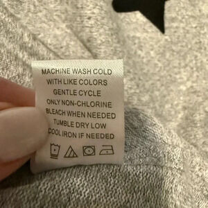 This relaxed fit blouse in light gray features a scoop neckline, 3/4 length sleeves, and a graphic star pattern.