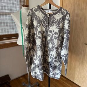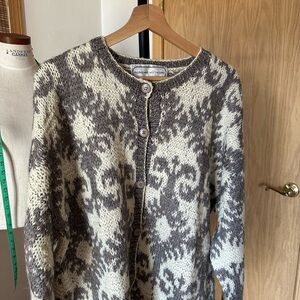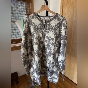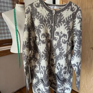 Adrienne Vittadini Gray and Cream Cardigan Sweater Vintage Lg Oversized Wool C6