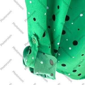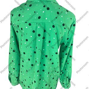 Adrienne Vittadini Green & Black Polka Dot Medium Rolltab Sleeve Button Blouse